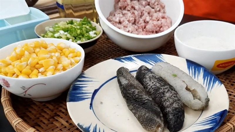 Khi cháo chín nhừ, bạn cho hạt ngô vào nấu khoảng 5 phút, rồi cho phần hải sâm đã xào vào cháo. Vừa cho bạn vừa khuấy đều tay và nếm lại gia vị. Vì hải sâm có vị mặn nên khi nêm nếm cháo bạn cần lưu ý cân bằng vị này.