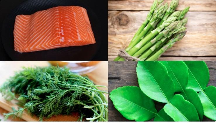 Nguyên liệu làm Cá hồi nướng giấy bạc với măng tây