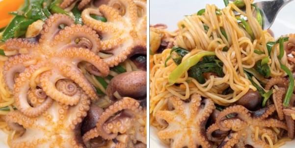 Vậy là chúng ta đã có ngay món “Mì xào bạch tuộc” với màu sắc bắt mắt cùng mùi thơm hấp dẫn,chỉ với 20 phút thực hiện. Bây giờ hãy trình bày món ăn ra dĩa, các bạn có thể thêm vào một chút rau ngò hay ớt trái, tiêu xay để tăng hương vị cho món ăn.