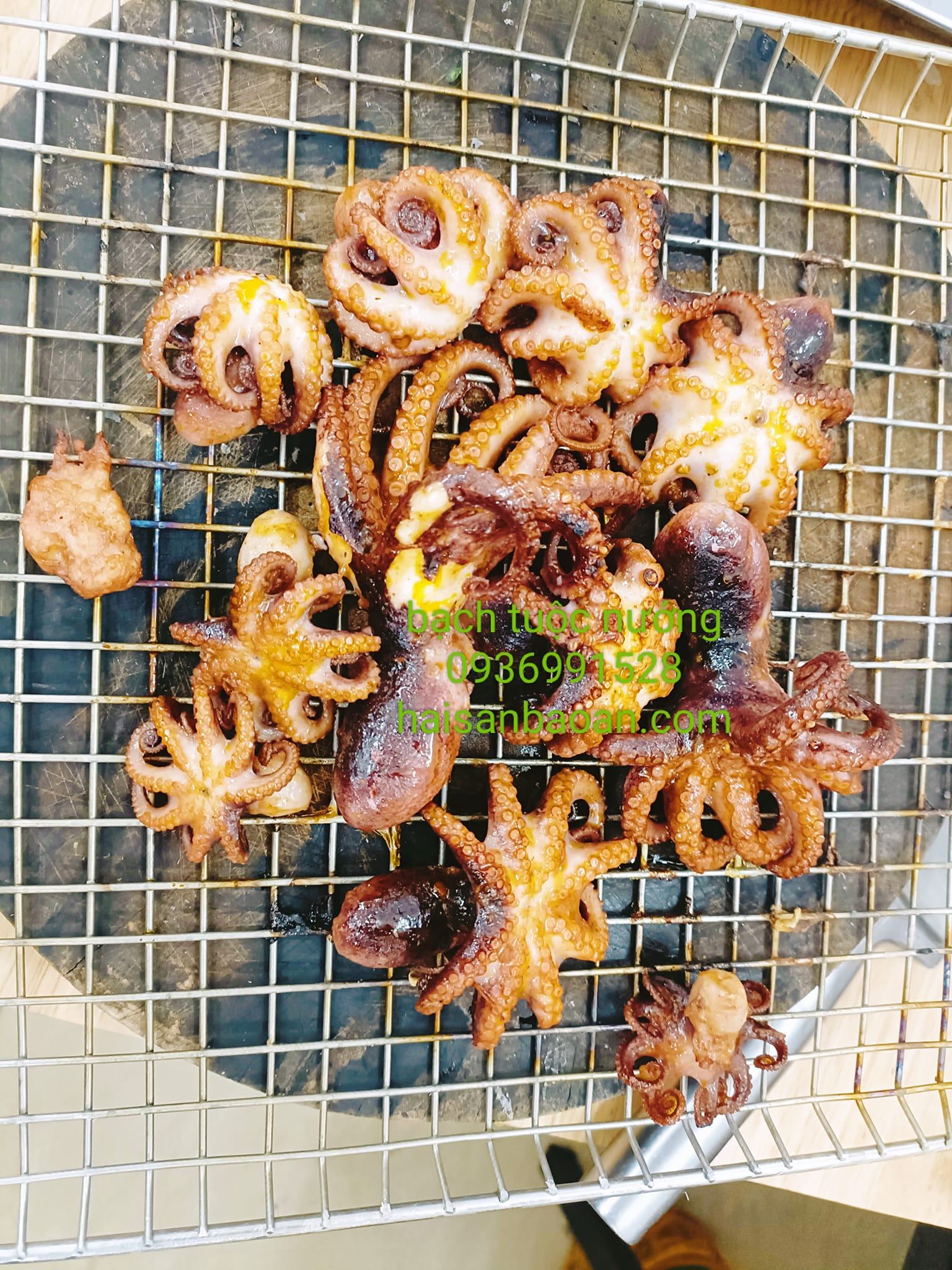 Sau khi đã ướp bạch tuộc trong vòng 30 phút, bắt đầu đốt than lên cho đến khi than cháy đều thì đặt vỉ nướng lên cho đến khi nóng rồi cho từng con bạch tuộc lên vỉ nướng. Một chú ý dành cho bạn rằng bạch tuộc được nướng nguyên con sẽ giữ được hương vị cũng như độ dài so với việc bị cắt ra từng phần nhé. Và dấu hiệu của việc bạch tuộc chín đó chính là màu sắc vàng đều cùng với mùi thơm.