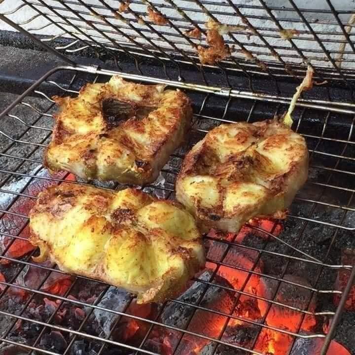 Cá Lăng sau khi được tẩm ướp kỹ lưỡng sẽ được nướng trên than hồng. Lửa than hồng đều, giúp cá chín đều, giữ trọn vẹn vị ngọt thanh tự nhiên. Lớp da cá Lăng nướng giòn tan, thịt trắng ngọt, dậy mùi thơm phức.