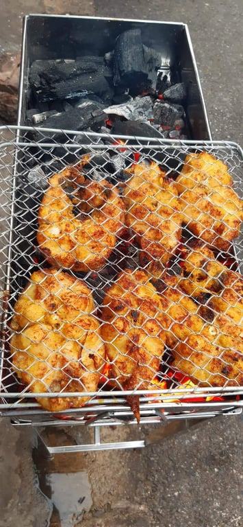 Sau khi ướp muối, con cá được nướng trên lửa than hoa lửa nhỏ cho đến khi da cá cháy giòn và màu sắc hấp dẫn. Quá trình này không chỉ giữ được độ ẩm của cá mà còn làm cho thịt trong con cá trở nên mềm mại và ngon miệng.