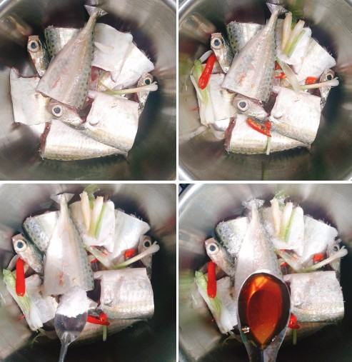 Làm gia vị để kho cá: ½ muỗng café nước mắm, ½ muỗng café bột ngọt, 1 muỗng café đường, 1 trái ớt (có thể gia giảm ớt theo tùy khẩu vị của từng gia đình).