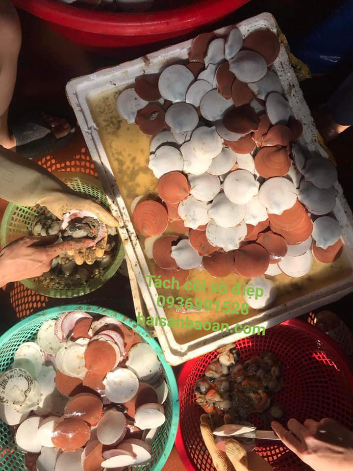 • Đối với những miếng cồi sò điệp còn lại các bạn nhanh chóng thực hiện như trên.
