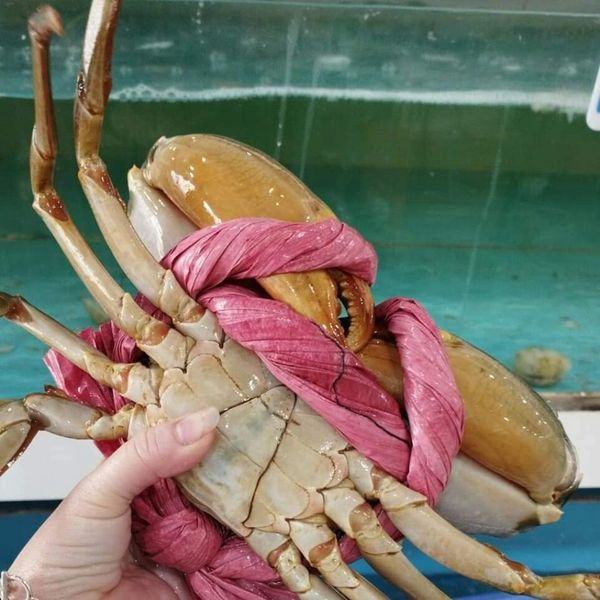 Khi mua cua về còn tươi và được cột chặt, vậy nên bạn phải hết sức cẩn thận khi cởi dây tránh bị thương nhé. Lấy cua ngâm vào nướng để cua nhả bớt phần chất bất rồi dùng các vật nhọn như kéo, cua hoặc tua vít để đâm vào chỗ lõm giữa bụng con cua đến khi nó không còn cử động nữa.