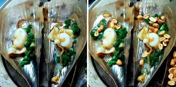 Làm nóng lò than, xếp sò lên trên rồi múc vào từng con 1 ít mỡ hành, 1 ít đậu phộng rang. Nướng sò khoảng 1 phút đến khi phần hỗn hợp bên trong sôi lên là được.