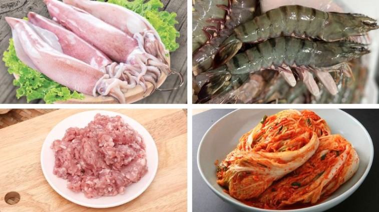 Nguyên liệu làm mực nhồi tôm thịt kim chi