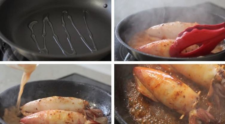 Bước 5 Áp chảo mực nhồi tôm thịt kim chi