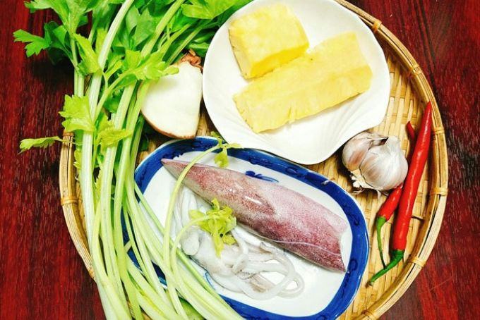 Nguyên liệu làm mực xào dứa: