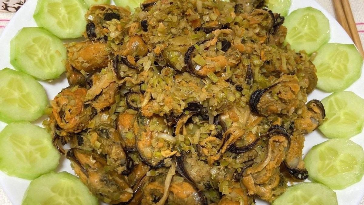 Vẹm xanh xào sả ớt có mùi hương thơm nức cùng vị ngọt thanh cay cay ăn kèm với bánh đa giòn rụm bùi bùi thơm thơm vô cùng hấp dẫn.