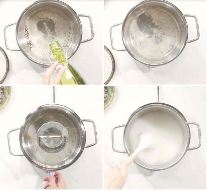 Bạn cho gạo vào nồi, thêm 600ml nước vào rồi đậy nắp và nấu cho đến khi cháo sôi lên thì mở nắp và nấu cháo trong 1 tiếng. Trong lúc nấu thì bạn nhớ dùng vá khuấy đều để cháo đừng bị cháy đáy nhé!