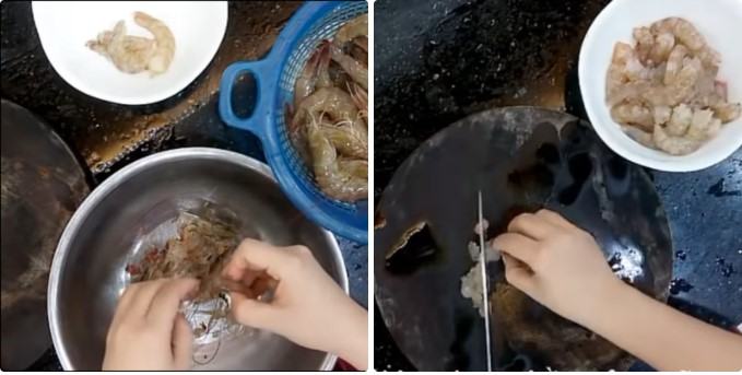 Tôm mua về, bạn đem đi rửa sạch, lột bỏ phần vỏ bên ngoài và loại bỏ chỉ tôm.