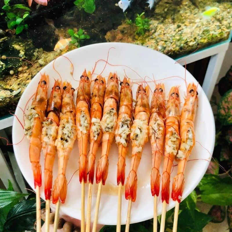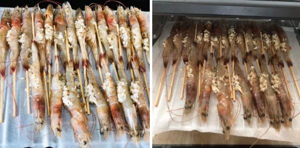 Tôm sau khi được ướp đủ thời gian, chúng ta sẽ đem đi nướng chín.