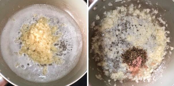 Tỏi bóc vỏ, băm nhuyễn cho vào chén cùng 20g bơ lạt, 1 viên phô mai, 10ml dầu ăn, ½ muỗng cà phê muối, 1/3 muỗng cà phê tiêu xay, ½ muỗng cà phê lá mùi tây khô và trộn đều.