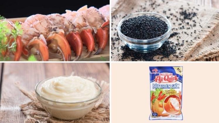 – Lấy 2M Gia vị nêm sẵn Aji-Quick Bột Chiên Giòn để riêng. Phần bột còn lại pha với nước theo tỷ lệ trên bao bì, trộn thêm 1/2M mè.