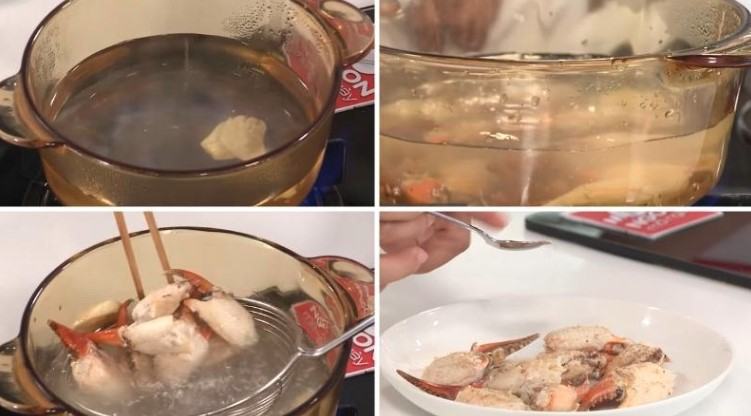 – Chần càng cua qua nước sôi có pha 1M rượu trắng, gừng đập dập. Vớt ra để ráo, trộn với chút tiêu khi càng cua còn nóng.