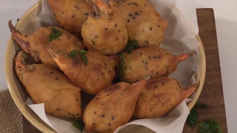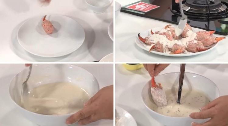 – Tạo hình: Bọc giò sống quanh càng cua, chừa càng que nhọn.