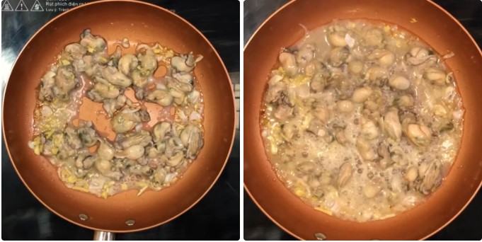 Kế đến, trút toàn bộ phần hàu sữa đã ướp gia vị vào và đảo đều trên lửa lớn khoảng 1 – 2 phút cho hàu vừa chín săn lại thì tắt bếp, rồi rắc thêm 1/3 muỗng cà phê tiêu lên trên.