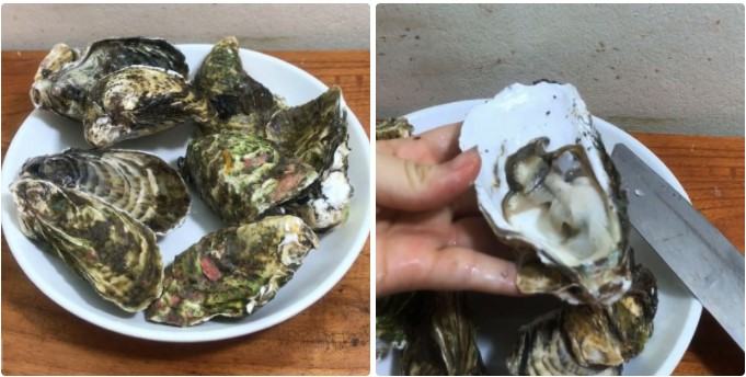 - Sau đó, bạn dùng dao tách bỏ 1 lớp vỏ của hàu rồi cho ra dĩa.