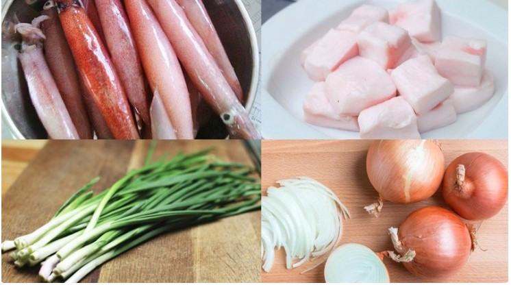 Nguyên liệu làm Mực trứng nướng mỡ hành