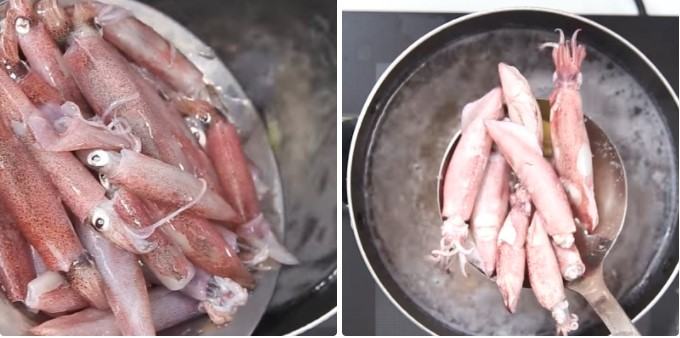Sơ chế và chần mực