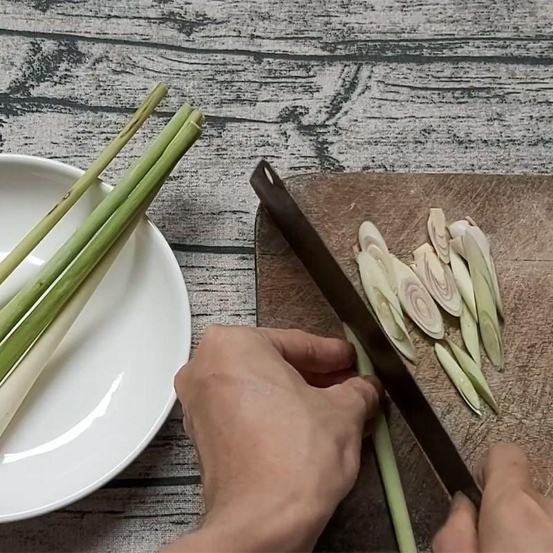 Sả khi mua về, bạn lột 1 – 2 lớp bên ngoài rồi rửa sạch, cắt lát phần thân sả.