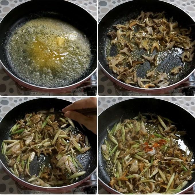 Sau đó, bạn cho phần sả cắt lát vào cùng 1 muỗng cà phê sa tế ớt, điều chỉnh lại gia vị cho hợp khẩu vị rồi đảo đều khoảng 1 phút nữa thì tắt bếp.
