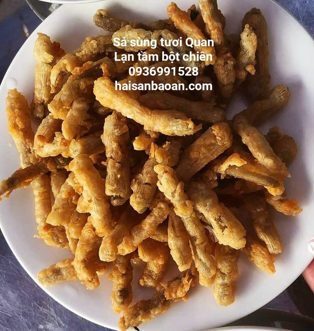 Sá sùng là một loại hải sản quý hiếm, có giá trị dinh dưỡng cao, được đánh bắt từ vùng biển sạch, đảm bảo an toàn vệ sinh thực phẩm. Với kỹ thuật chế biến chuyên nghiệp, sá sùng tươi được chiên giòn rụm, giữ trọn vị ngọt thanh, không bị dai, tạo nên món ăn ngon miệng, hấp dẫn.
