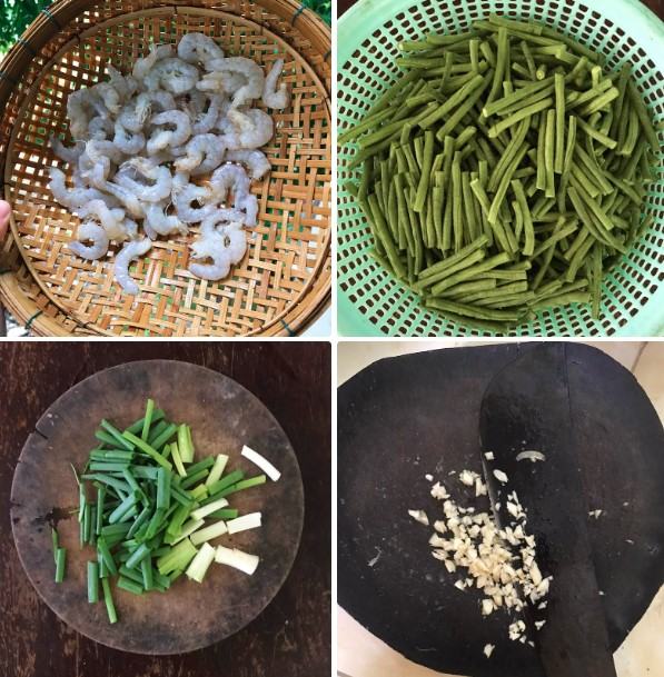 Đậu đũa ngắt bỏ hai phần đầu rồi cắt khúc vừa ăn dài khoảng 2 lóng tay.