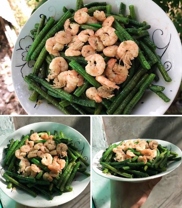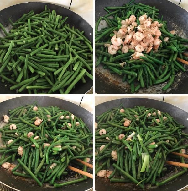 Tận dụng chảo xào tôm, bạn cho đậu đũa vào xào đều tay khoảng 2 phút với lửa lớn rồi đậy vung lại, hạ lửa nhỏ và nấu trong 5 phút cho đậu đũa chín.